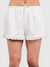 The Sadie & Sage Lowtide Eyelet Trim Shorts feature a pristine white palette and a romantic, airy silhouette with delicate embroidery that brings a soft, feminine touch to your getaway wardrobe. The sweet eyelet details and ruffled hem create a breezy, elevated look for sun-drenched days.