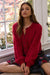 Meet Aimee, the cardigan that refuses to be ordinary. Dramatic gigot sleeves and intricate knit textures transform this wardrobe staple into something truly special. Button up as much or as little as you like with the adjustable front placket—comfort meets style. Wrapped in a stunning crimson hue, this piece brings festive flair and undeniable personality to any outfit.