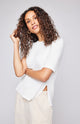 The Alexandra blouse is made of a chiffon fabric with a print designed in-house. Features include delicate ruffle detailing with an embroidered edge, fabric-covered buttons, and a tie detail.